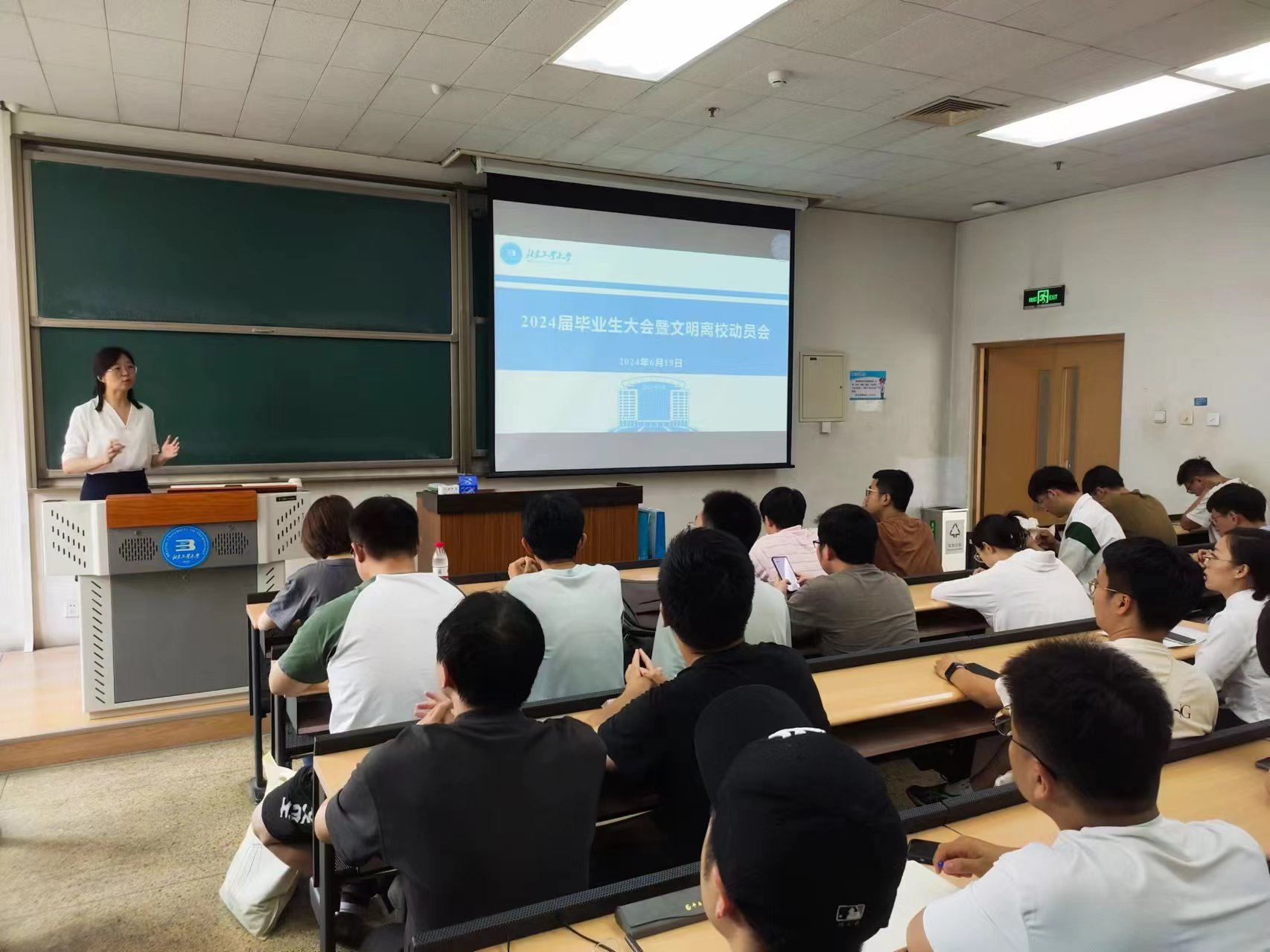 为做好毕业生文明离校教育工作,营造良好的毕业氛围,yl6809永利于6月19日下午在三教317召开2024届毕业生大会暨文明离校动员会。学工办老师们详细介绍了毕业生就业手续办理和离校流程等相关事宜,就户档手续、党团关系转接等重要事项进行了说明,并对毕业生进行安全教育,倡导毕业生文明离校、安全离校。