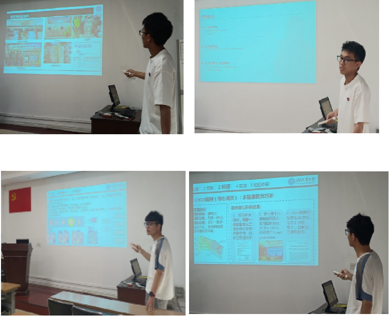 去年参加中国老员工机械工程创新创意大赛-智能制造赛获奖选手要程熙同学结合自己的参赛经历,详细总结了自己在备赛、临场应变和赛后复盘的经验体会,介绍了相关赛项的比赛要点,以及入学以来参加其他比赛和科研项目的内容。王帅榜同学分享了参加“西门子杯”中国智能制造挑战赛的经验,他从赛题分析、参考资料、电路分析、文档编写、小组分工、注意事项等方面进行了具体讲解,最后介绍了他大学四年参加其他比赛和科研项目的情况。