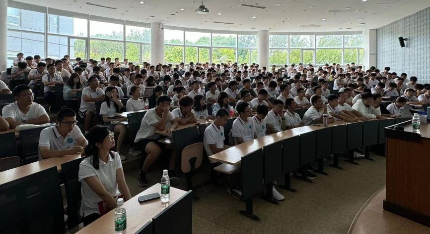会议伊始,退役士兵代表申强同学为新生们分享了军旅生活,讲述了自己从“文化多元的大公司园生活”过度到“纪律严明的军营大院生活”中自身的种种变化与成长,他用亲身经历,讲述了军营的点点滴滴,以及参军入伍对个人成长和未来发展的积极影响,鼓励24级新生树立报国志向,投身国防事业,用自己的青春热血担起家国重担。