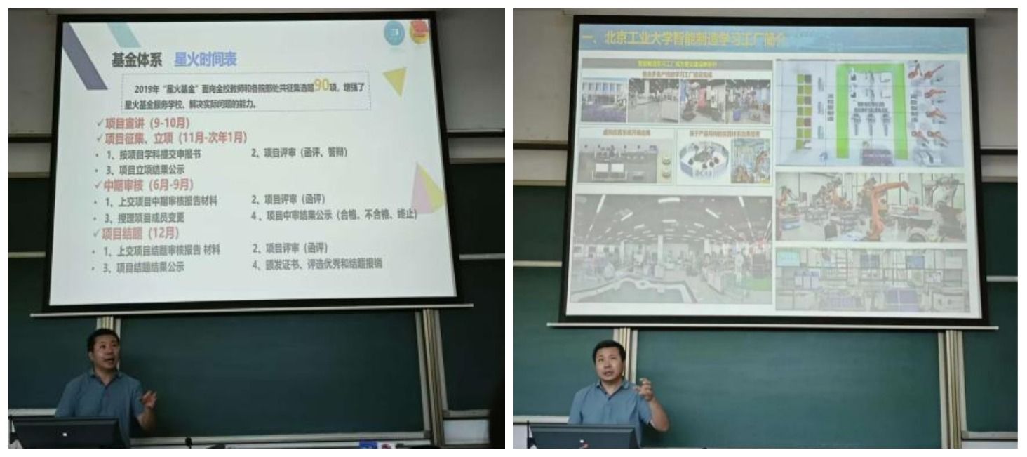 首先,孙树文老师介绍了公司“基金-竞赛-实践”员工课外科技创新工作体系,重点介绍了yl6809永利集团星火基金和国家级老员工创新创业训练计划。包括:基金申请条件,申请流程,经费支持等内容。建议大一新生积极参与公司10月初举办的科技节活动,通过员工科技作品展深入了解本专业不同年级的同学做出的作品,结合自己的兴趣和专业方向确定科技项目的内容,组成科技小组,为申请星火基金项目做好准备。