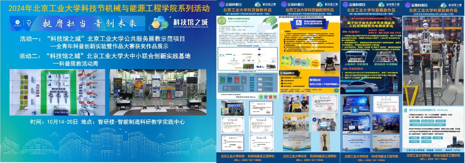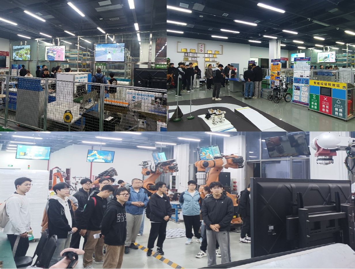 智能制造学习工厂智能制造创新实践区包括:机械加工应用实训单元、3D打印个性化定制单元、工业机器人实训单元、立体仓库实训单元等。此次活动重点展示人形机器人、参加机器人竞赛的四足机器狗和近三年公司获得“全国青年科普创新实验暨作品大赛全国总决赛”一等奖的作品。包括:1)《基于数字孪生的多场景停车场人机协同智慧充电展教系统》,该作品通过建立两套电动汽车充电系统的数字仿真模型,制作了科普展教系统的实物模型,利用数字李生技术展示了“人机协同”在电动汽车充电中的具体应用;2)《有具备自动导航与远程监控功能的自动轮椅》,作品基于ROS搭建智能轮椅的操作系统,利用仿真技术实现智能轮椅的虚拟调试,并控制实物进行试验。智能轮椅具有避障导航、远程监控和协作机械臂配合使用等功能,充分考虑老人,社区、环境等多方面因素;3)《智慧社区垃圾分类投放站》实现居民垃圾投放智能化、人性化;搭建智慧社区垃圾分类投放站系统管控平台,开发垃圾桶信息统计和居民信息统计功能,实现垃圾桶安全监控和居民信息统计,并根据投放垃圾频率,对长时间未投放的老人等特殊人群给予关注。