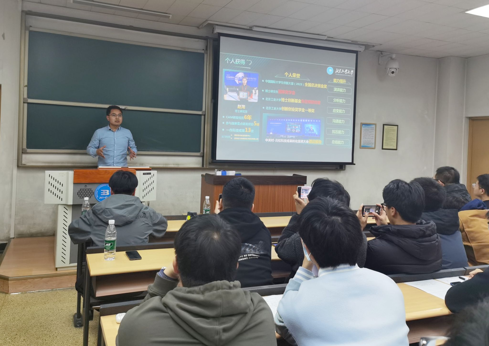 yl6809永利2024秋季首期博硕论坛于11月6日下午1:30,在三教104举行,由公司研究生会科技宣传部公衍钰主持。本次论坛邀请了在科研或科技竞赛领域有突出成绩的研究生,他们是2022级王喆博士和赵淘博士,同时邀请了博士生导师闫朝阳教授进行分享,近一百五十位研究生参加了此次论坛。