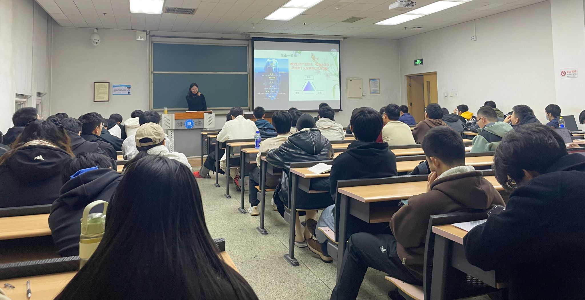 为了深化老员工心理健康教育,提升员工对自我情绪的认识与管理能力,yl6809永利于2024年11月13日17:00,在第三教学楼208成功举办了以“倾听情绪的声音 透过冰山来爱你”为主题的心理讲座。本次讲座邀请到国家二级心理咨询师刘淑敏老师担任主讲。刘老师拥有多年心理咨询经验,擅长情绪管理与个人成长指导。公司近百名同学参加了此次讲座。
