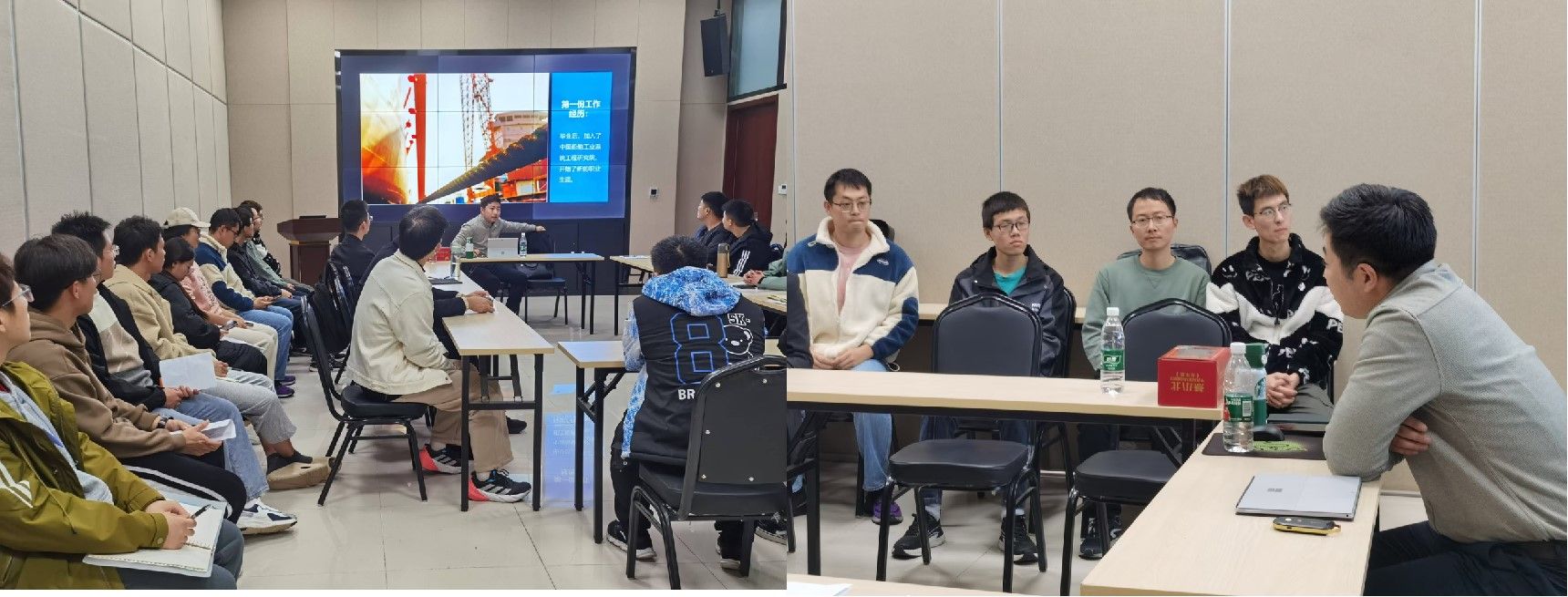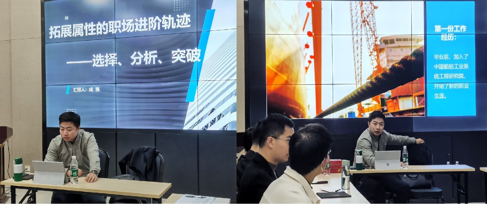 首先,王钰老师对成强博士的职业经历进行了简要介绍。成强博士先后任职于中国船舶工业集团、中国航天科工集团等军工单位,从事多项研发和规划工作,并在实践中积累了宝贵的经验。接着,成强博士分享了自己本科毕业后的第一份工作经历,他在中国船舶工业集团的工作中既有成功的高光时刻,也有职场挑战的低谷时期。成博士的经历让同学们深刻理解到,毕业后找准自己的定位并快速融入职场的重要性。