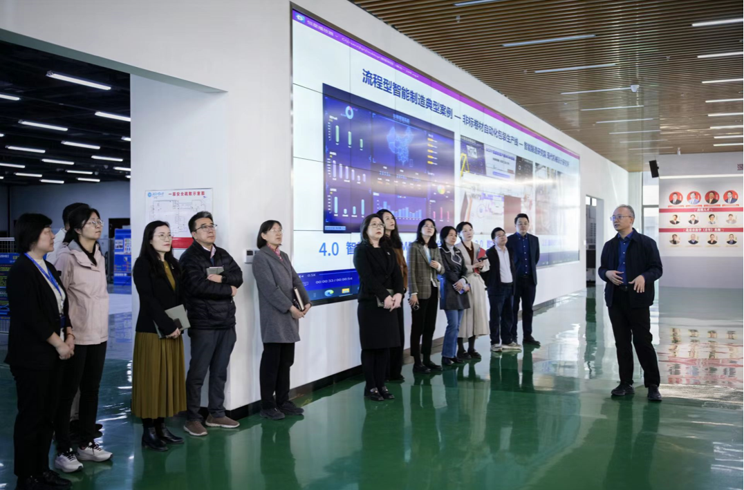 公司党政班子首先陪同刘董事长一行参观了智研楼一层智能制造科教融合展厅,然后介绍了公司在人才培养方面的主要工作,包括人才培养方案修订、专业学科优化设置、新形态教学资源建设、人才招聘以及教学质量体系建设等方面的重点举措与成绩。