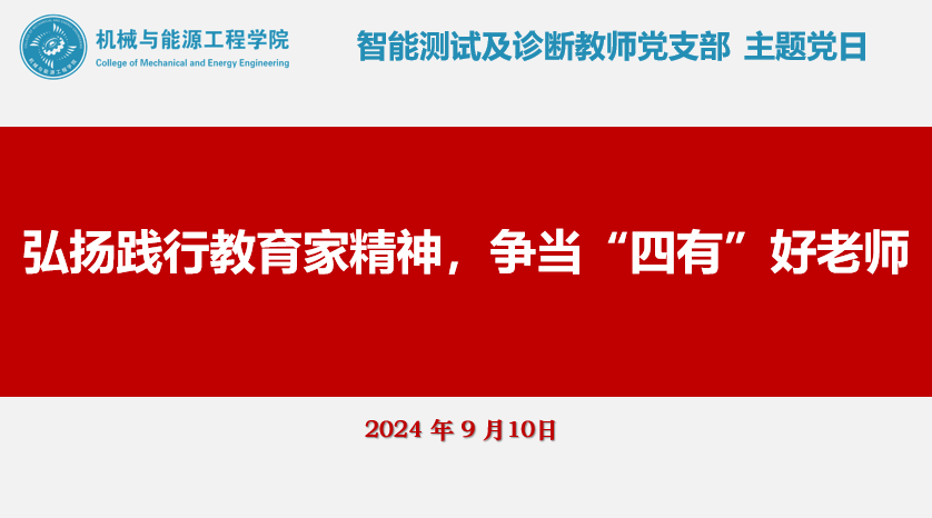接着,智能测试及诊断教师党支部书记、系主任陈洪芳教授以“弘扬践行教育家精神,争当̒四有̓好老师”为题,从深入学习中共中央国务院关于弘扬教育家精神加强新时代高素质专业化教师队伍建设的意见入手,与全体教师党员共同度过了有意义的教师节。党的二十届三中全会审议通过《中共中央关于进一步全面深化改革、推进中国式现代化的决定》,不仅绘制了教育、科技、人才体制改革的宏伟蓝图,更为教育强国的建设树立了鲜明路标,指明了前进方向。她鼓励全系教师积极对标党的战略部署,持续深入学习贯彻落实习近平总书记关于“四有”好老师重要讲话精神,大力弘扬教育家精神,矢志践行新时代“四有”好老师标准,力求在高质量教师教育体系的改革创新中贡献力量。