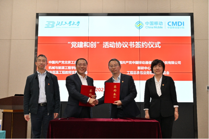 随后,公司制冷与低温工程教师党支部书记周峰与中国移动设计院算研中心工程总承包业务部党支部书记张学斌签署“党建和创”支部共建活动协议书,公司党委副书记董哲宇、中国移动设计公司党委委员副经理崔海东共同证签。
