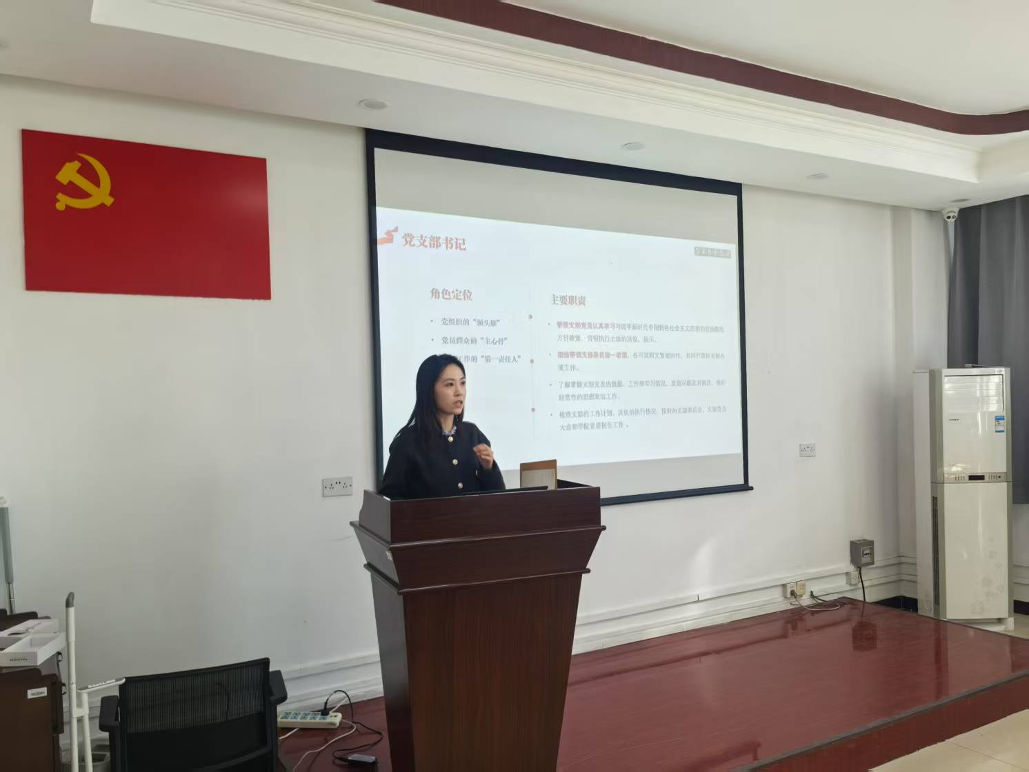 接下来,李冉老师从严格落实“三会一课”制度、充分发挥支部自身的专业特色开展主题党日活动、师生支部共建、支部工作手册等方面进行培训,希望各个支部在党的日常工作中发挥重要作用,增强员工党支部的组织力和战斗力。