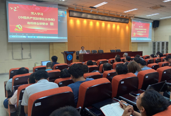为深入学习贯彻习近平总书记关于党纪学习教育的重要讲话和重要指示精神,引导党员干部学纪、知纪、明纪、守纪,进一步扎实推进党纪学习教育,增强党员的纪律意识和规矩意识,公司党委于6月19日下午组织召开党纪学习教育专题党课,全院在职教职工、离退休教职工和员工党员以线上线下相结合的形式参加此次学习。