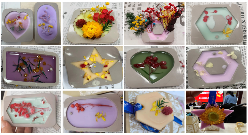 随后,教职工们根据操作步骤开始香薰蜡片制作体验。经过1个多小时的制作,一个个充满创意、独一无二的香薰蜡片呈现在大家眼前,教职工纷纷拍照纪念,现场气氛温馨、热烈。